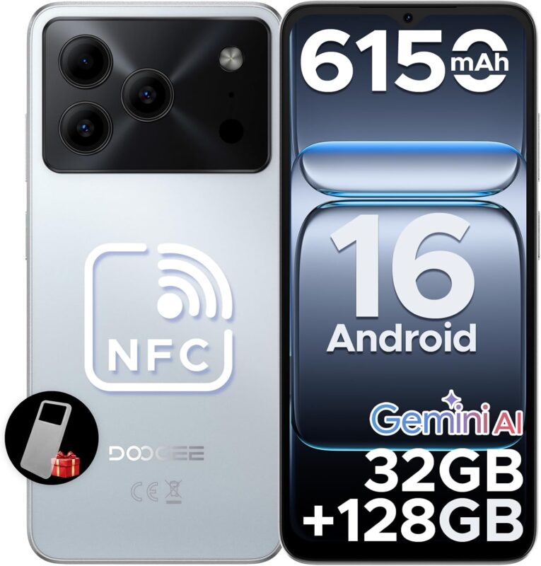 DOOGEE Note 56 Pro Android 16 Unlocked Phone with Gemimi AI,32GB+128GB/2TB Cell Phone,6150mAh Battery,6.56”HD+90Hz IPS,Dual SIM Octa Core Smartphone,Dual Camera/8.45mm Ultra-Slim/NFC/OTG/Face ID | Latest Android 16, Gemimi AI, 6150mAh Battery, 32GB RAM+128GB ROM, T7225 Octa-Core, 6.56″ HD+ Display