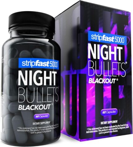 stripfast5000 Weight Management Support + Relaxation Capsules, Stimulant-Free for Women & Men, Night Bullets Blackout
