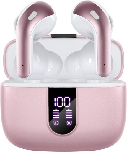 TAGRY Bluetooth Headphones True Wireless Earbuds 60H Playback LED Power Display Earphones with Wireless Charging Case IPX5 Waterproof in-Ear Ear buds with Mic for TV Smart Phone Laptop Computer Sports