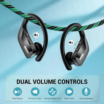 occiam Sport Wireless Earbuds Bluetooth Headphones 80hrs Playtime Deep Bass Ear Buds with Earhook Noise Cancelling Mic Waterproof Earphones for Workout Running Black