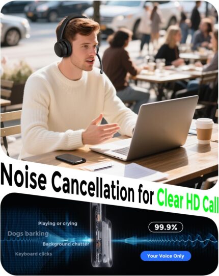 (2026 Upgraded) Wireless Headset with Mic for Work, Bluetooth Headset with Noise Canceling Microphone, Wireless Headphones with Mic and USB Dongle and Mute, Fit for Computer/PC/Teams