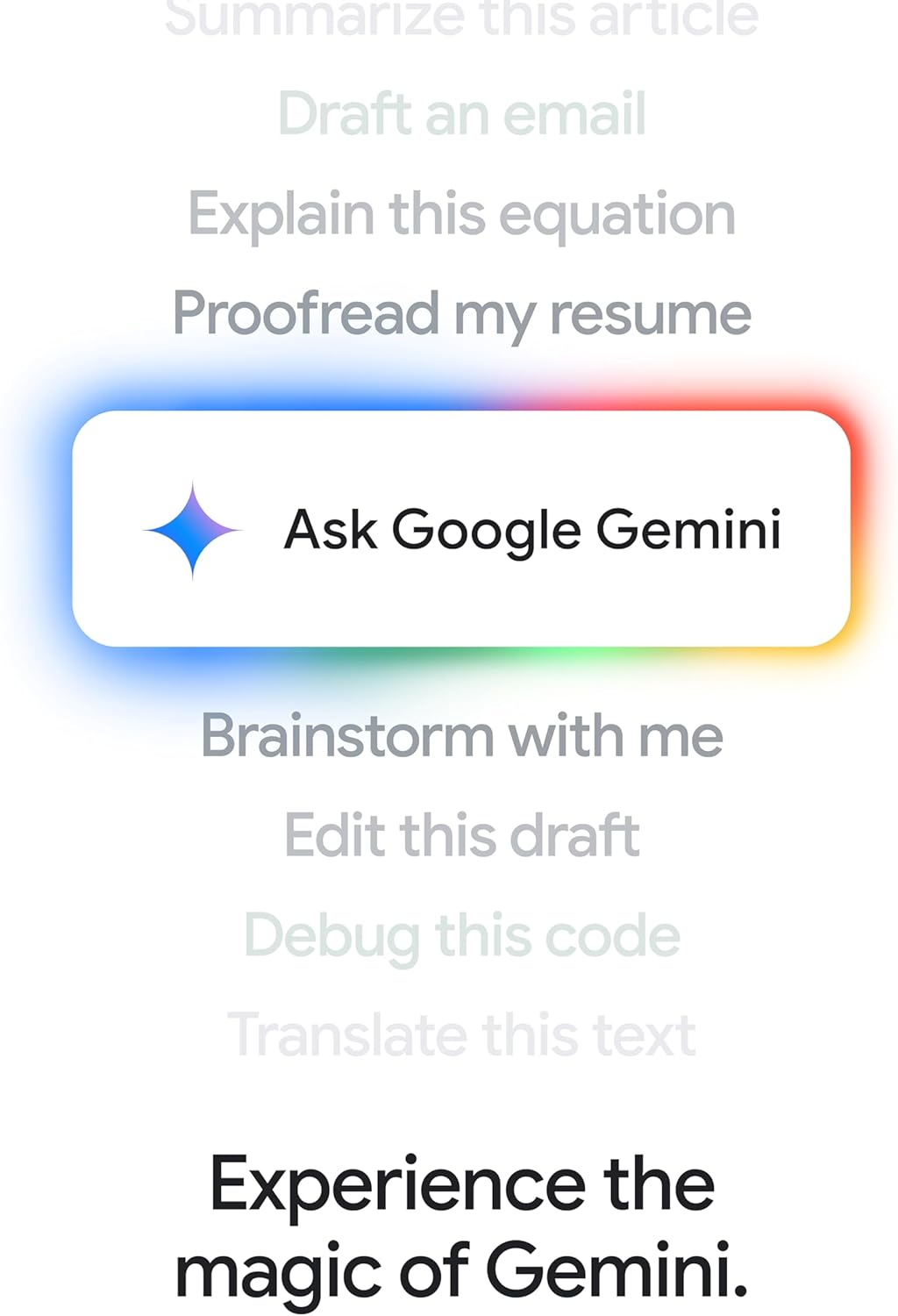 Chat with Gemini: Supercharge your ideas, right from your home screen. Get help planning, writing, learning, and more. (2)