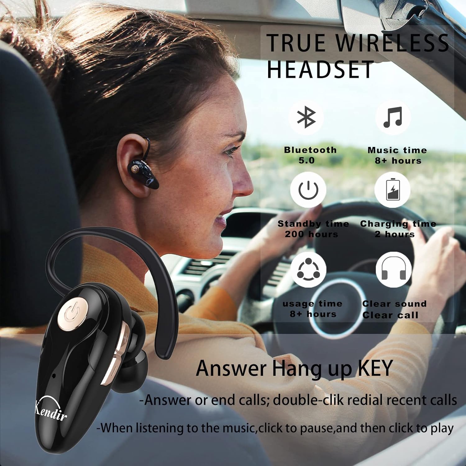 【High Compatibility & Bluetooth V5.0】- Kendir’s driving headset is compatible with iPhone, Android, most of the smartphones, tablets, Windows systems, etc. With advanced Bluetooth V5.0, this wireless headset has a higher transmission speed and work efficiency than other products, as well as consuming less power during operation.
