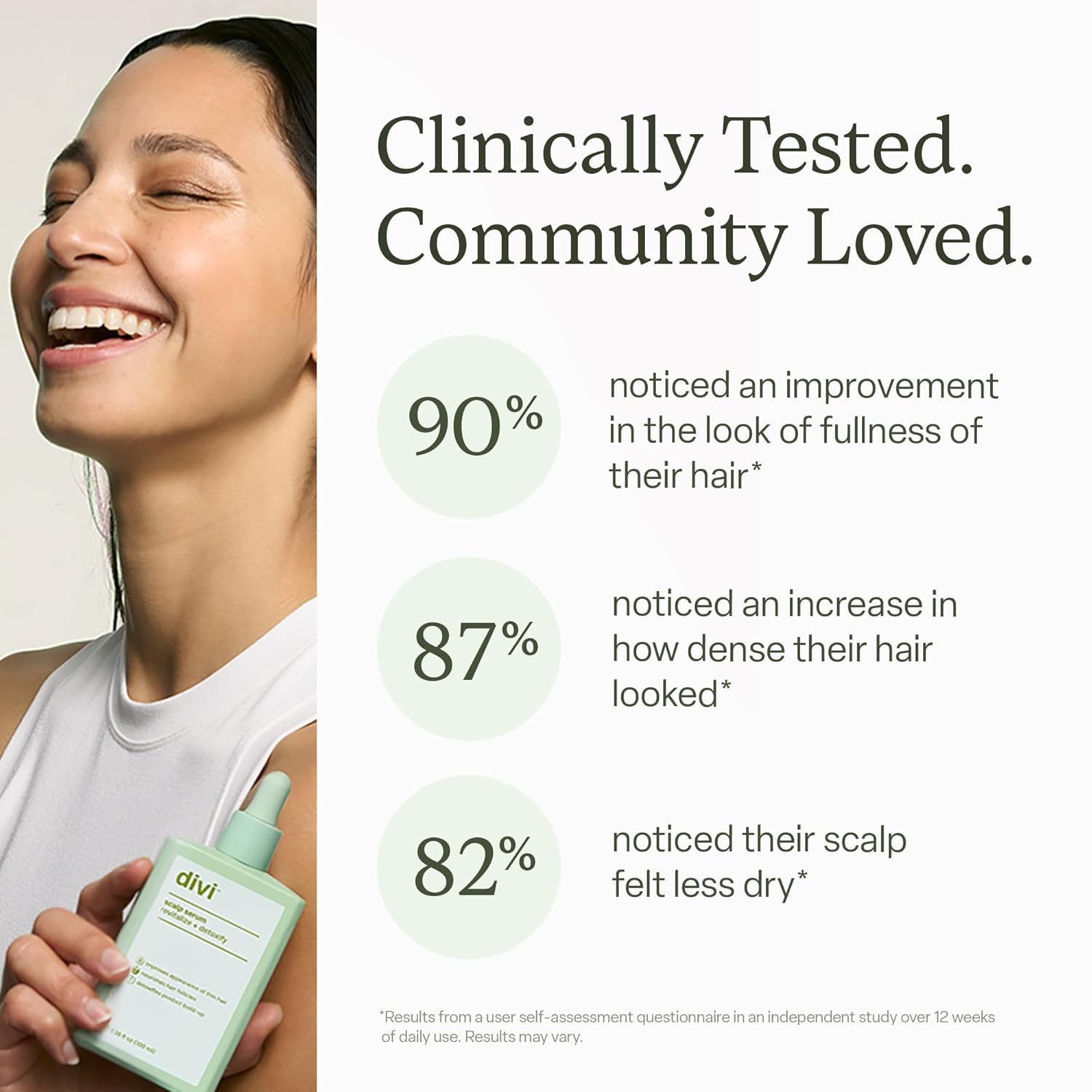 AWARD-WINNING, CLINICALLY TESTED FORMULA – Divi’s Scalp Serum is designed to nourish your scalp and promote a fuller, healthier-looking head of hair. In a 12-week study, 90% of participants saw improvement in hair fullness, and 87% noticed increased hair density.
