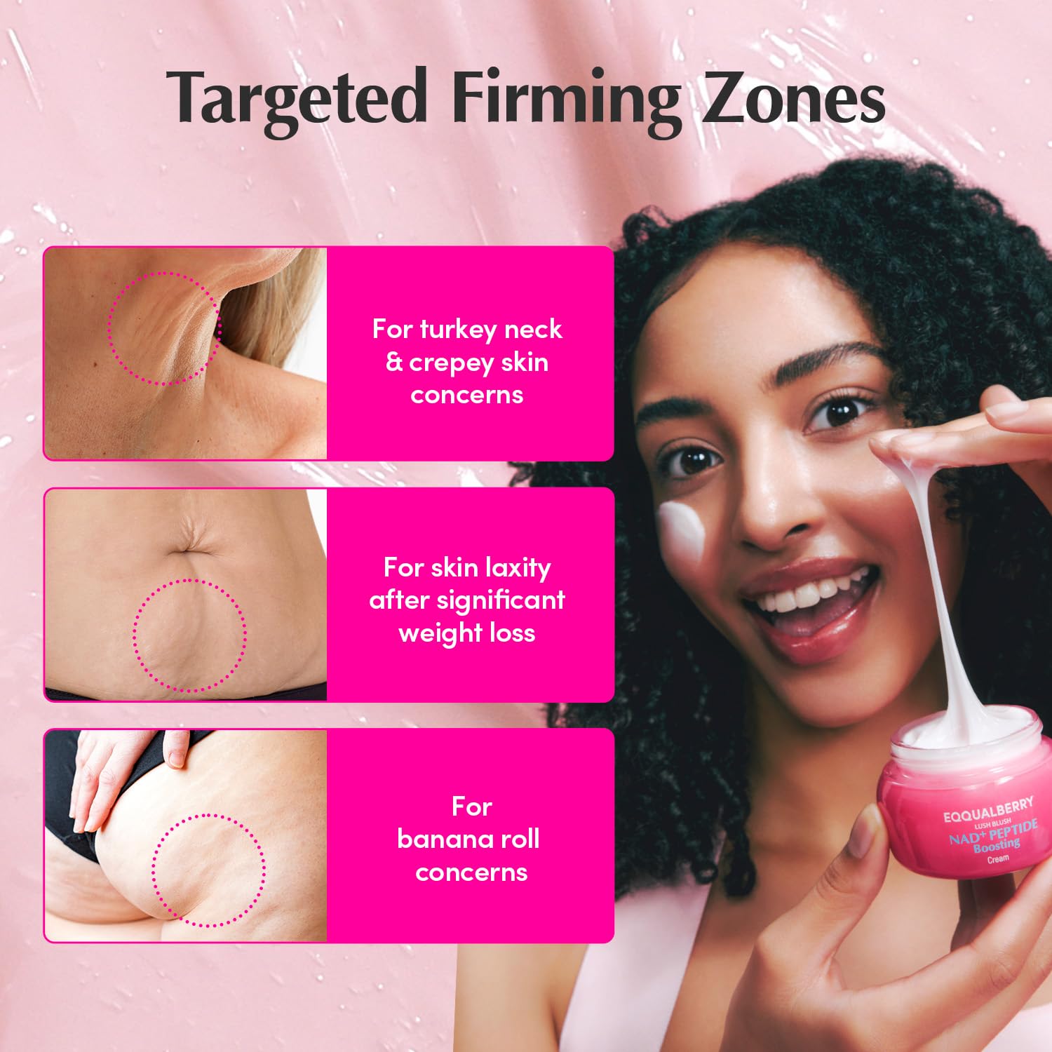 EQQUALBERRY NAD+ Peptide Boosting Cream – NAD+ 5% & 13 Peptides Anti-Aging Korean Skincare Face & Body Cream | Firming & Lifting Pink Neck Cream for Sagging Skin (1.69 fl.oz / 50ml)