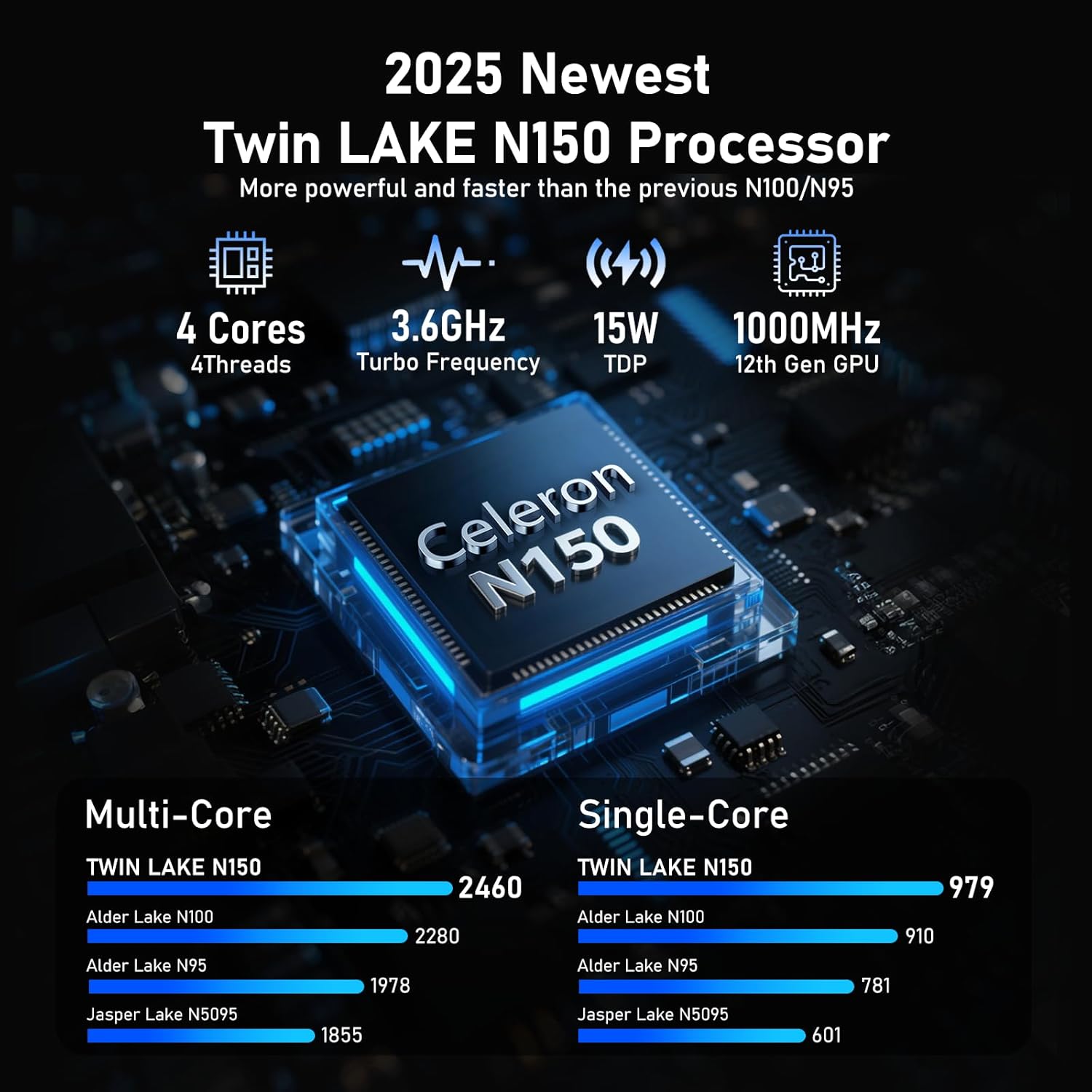 [Advanced Processor]: The laptop features the latest 13th generation Alder Lake N150 processor with 3.6GHz boost frequency, 4 cores and 4 threads, providing powerful performance for multitasking, streaming, and gaming.