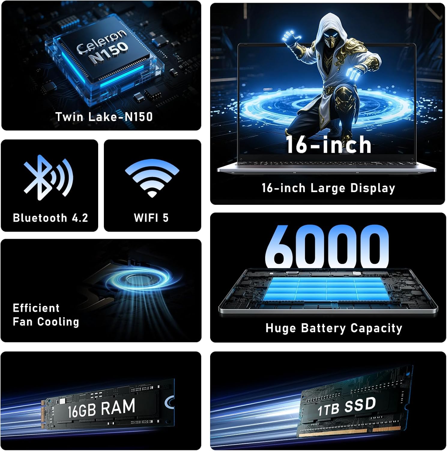 FUNYET Gaming Laptop, 16 inch Laptop Computer 2026 with Windows 11 Pro, 16GB RAM 1TB SSD, Int 13th Gen N150 Processor(up to 3.6GHz), Backlit Keyboard, Bluetooth, Mini HDMI, Office 365, FHD 1080P