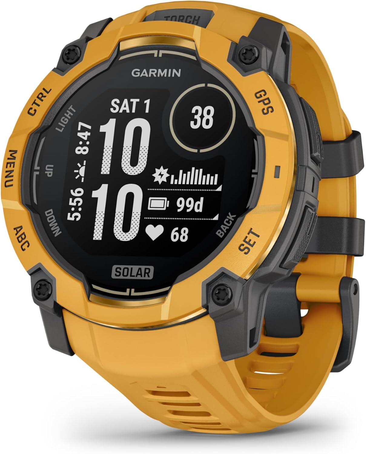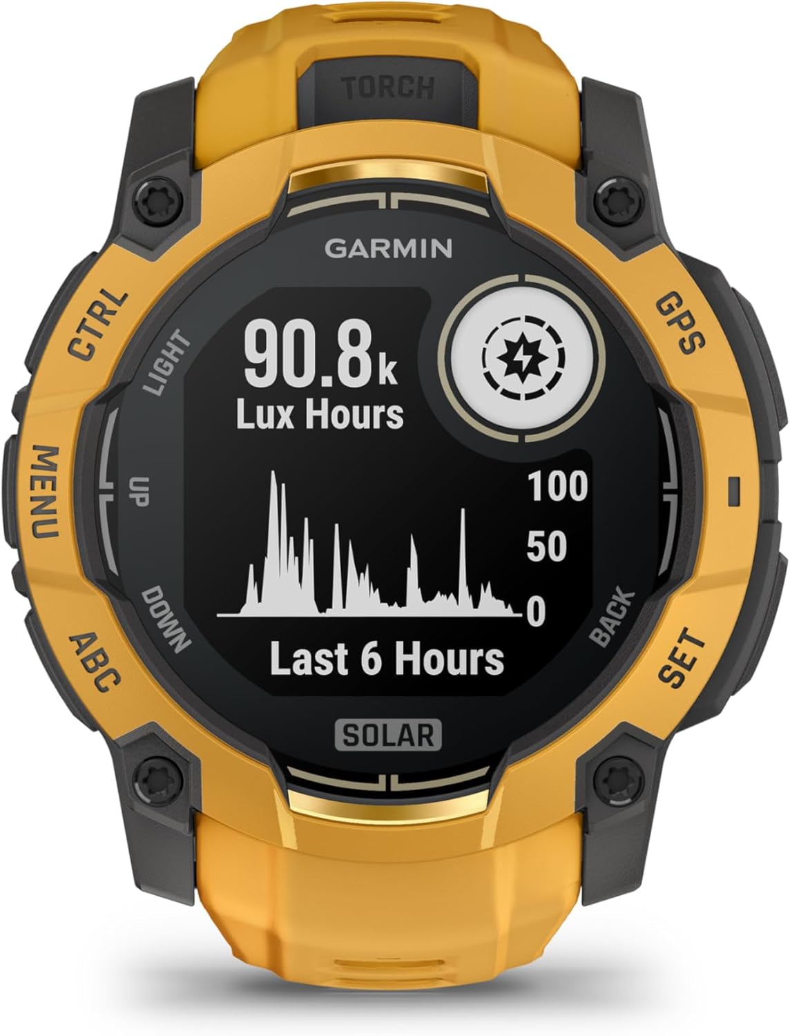 Garmin Instinct® 3 – 50 mm, Solar, Rugged Outdoor GPS Smartwatch, Built-in Flashlight, Alpine Rush Collection Limited Edition Color, Sunburst with Sunburst/Gray Band