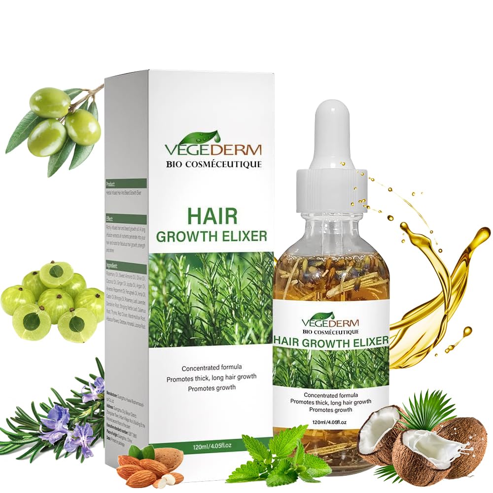 Hair Growth Elixir | Natural Hair Growth Oil for Scalp & Beard | Hair fall control Serum for Women & Men | Rosemary, Castor Oil, Biotin | Treatment for Longer Hair & Beard | 4.05 Fl Oz