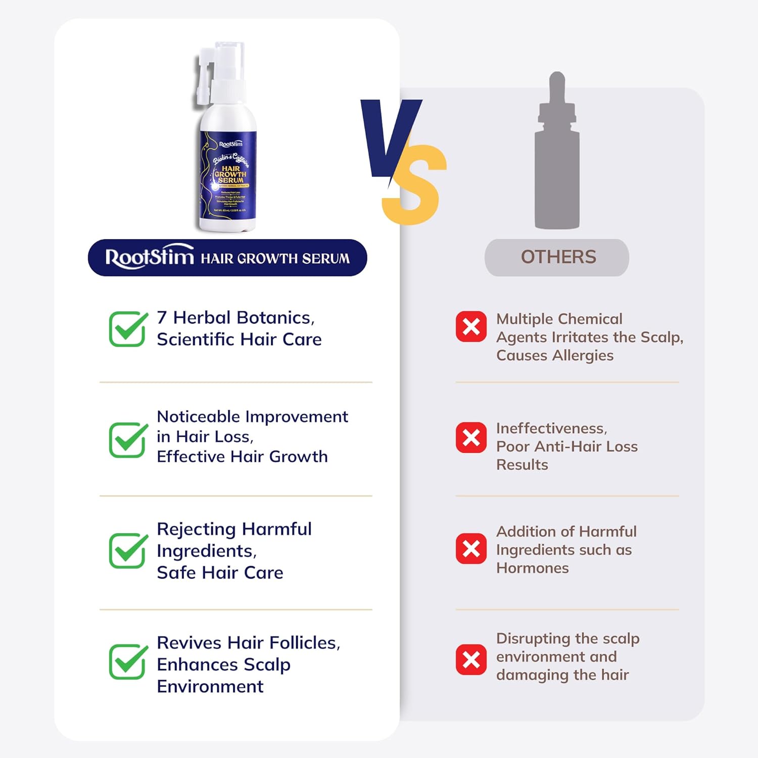Zero Hormones, No Side Effects, Gentle on Scalp: Rootstim hair growth products is a blend of verified natural ingredients that offer a comprehensive hair care treatment. It is free from parabens, cruelty-free, gluten-free, sulfate-free, fragrance-free, and triclosan-free. These ingredients come from clean and safe sources, ensuring maximum efficacy and safety