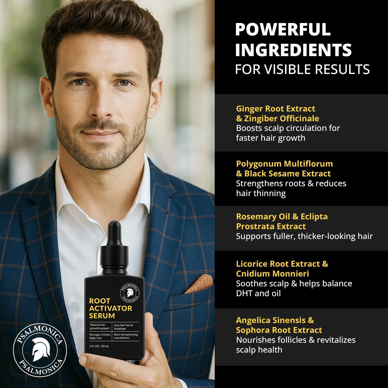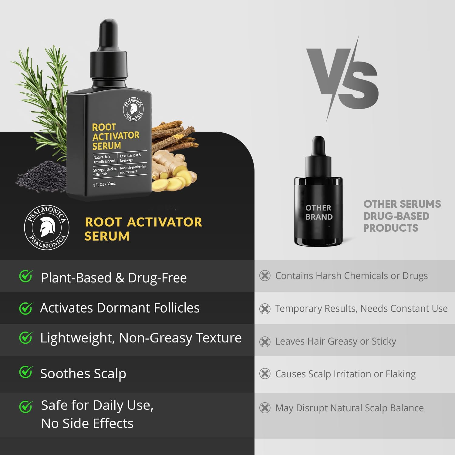 ✅ Formula Inspired by Root Activator Shampoo – This upgraded hair growth serum blends herbal extracts like rosemary, ginger, and black sesame to nourish the scalp and support visible regrowth.