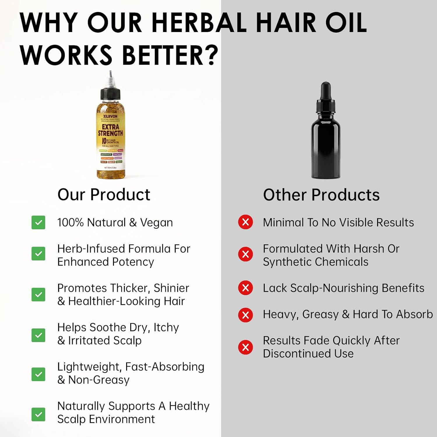 100% Natural Hair Oils for Deep Nourishment: Powered by 10 premium oils—rosemary oil, fenugreek oil, batana oil, castor seed oil, pumpkin seed oil, argan oil, sweet almond oil, lavender oil, grapeseed oil, and jojoba oil. No fillers, mineral oil, or chemicals—just pure, concentrated plant-based moisture for dry or damaged hair.