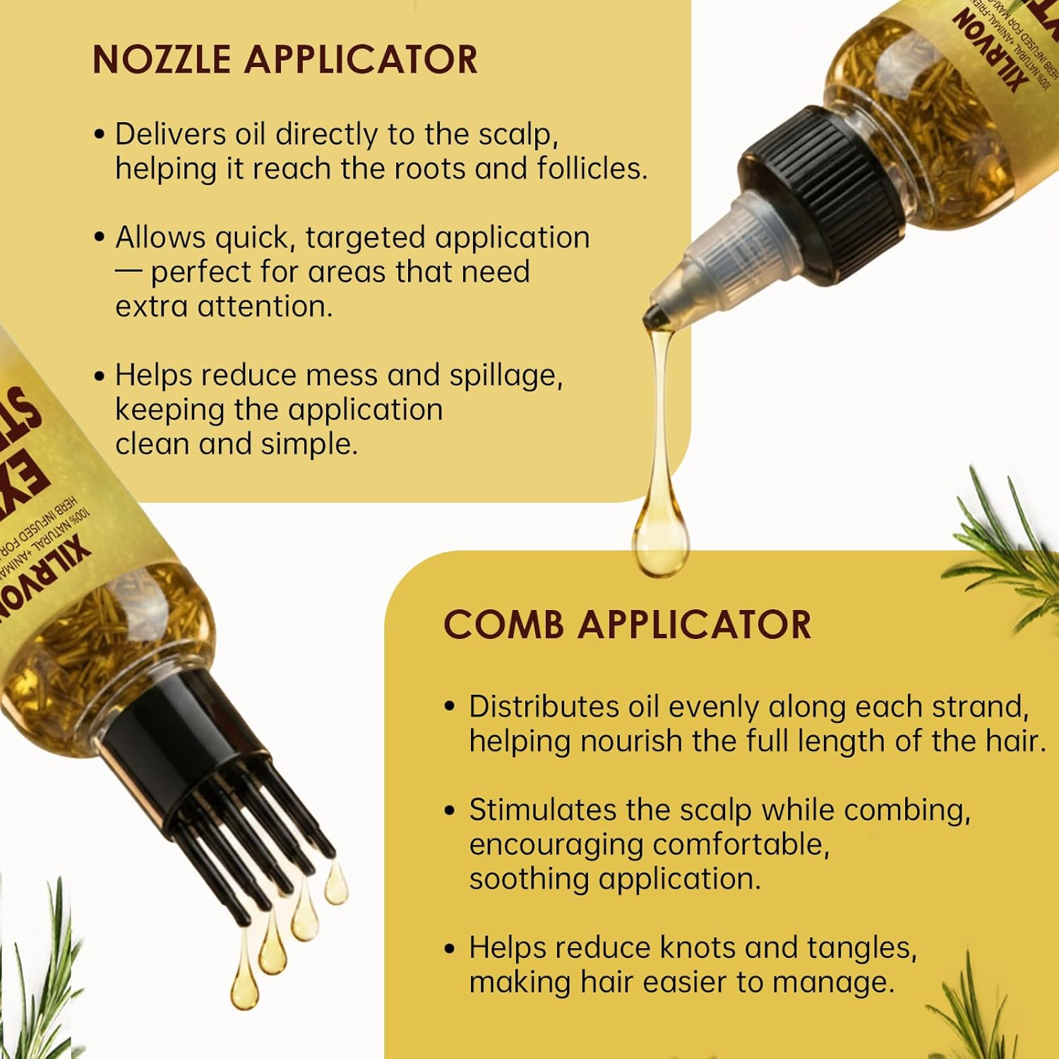 Lightweight, Pleasantly Scented Hair Oil with Thoughtful Applicators