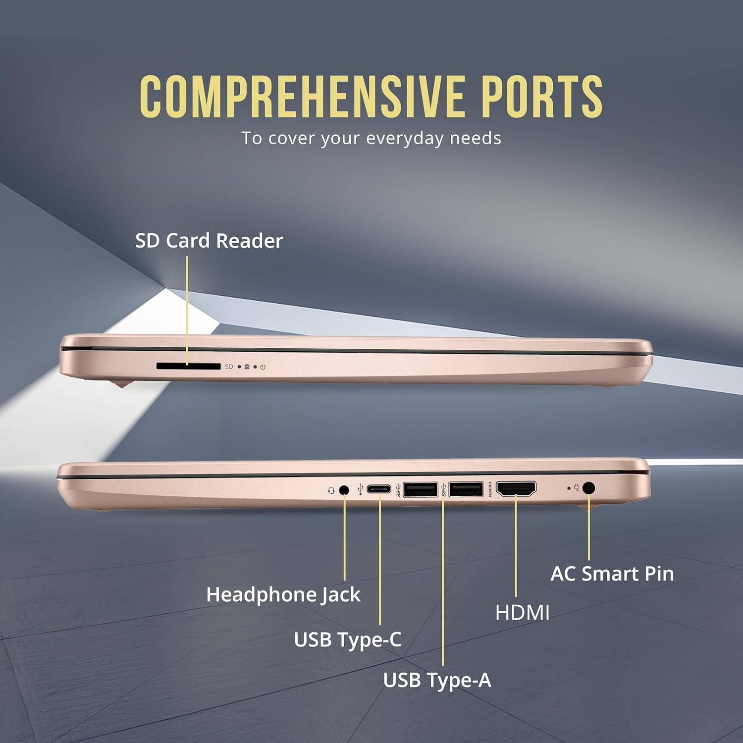10 reviews for HP Stream 14″ HD BrightView Laptop, Intel Processor N150, 16GB RAM, 416GB Storage (128GB eMMC + 288GB Docking Station Set), Intel UHD Graphics, 720p Camera, Wi-Fi, 1 Year Office 365, Win 11 S, Gold