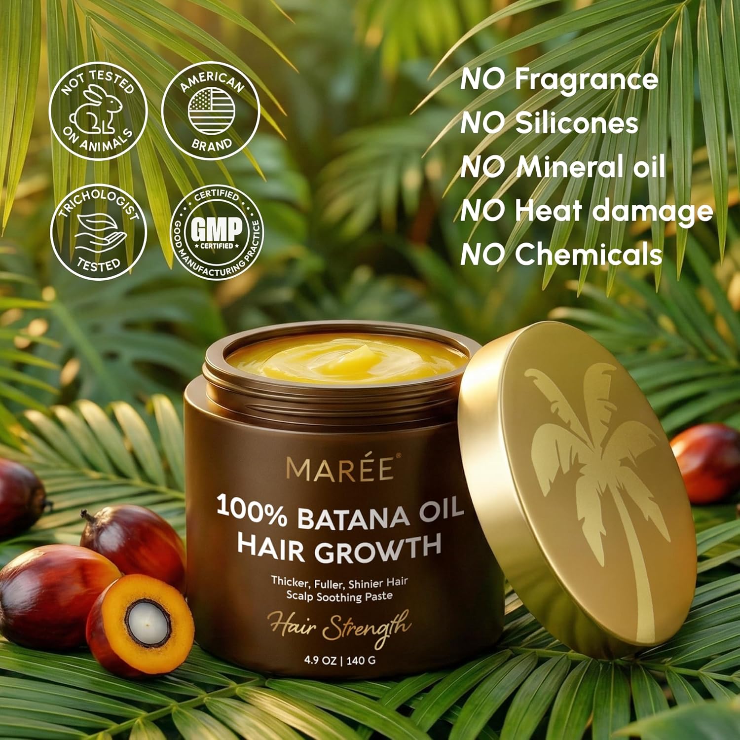 Batana Natural Hair Growth Oil – Support the look of long, strong hair with MAREE 100% Batana Hair Oil. This bantana natural hair growth oil is traditionally used in holistic hair care routines to help hair feel healthier, fuller, and more manageable