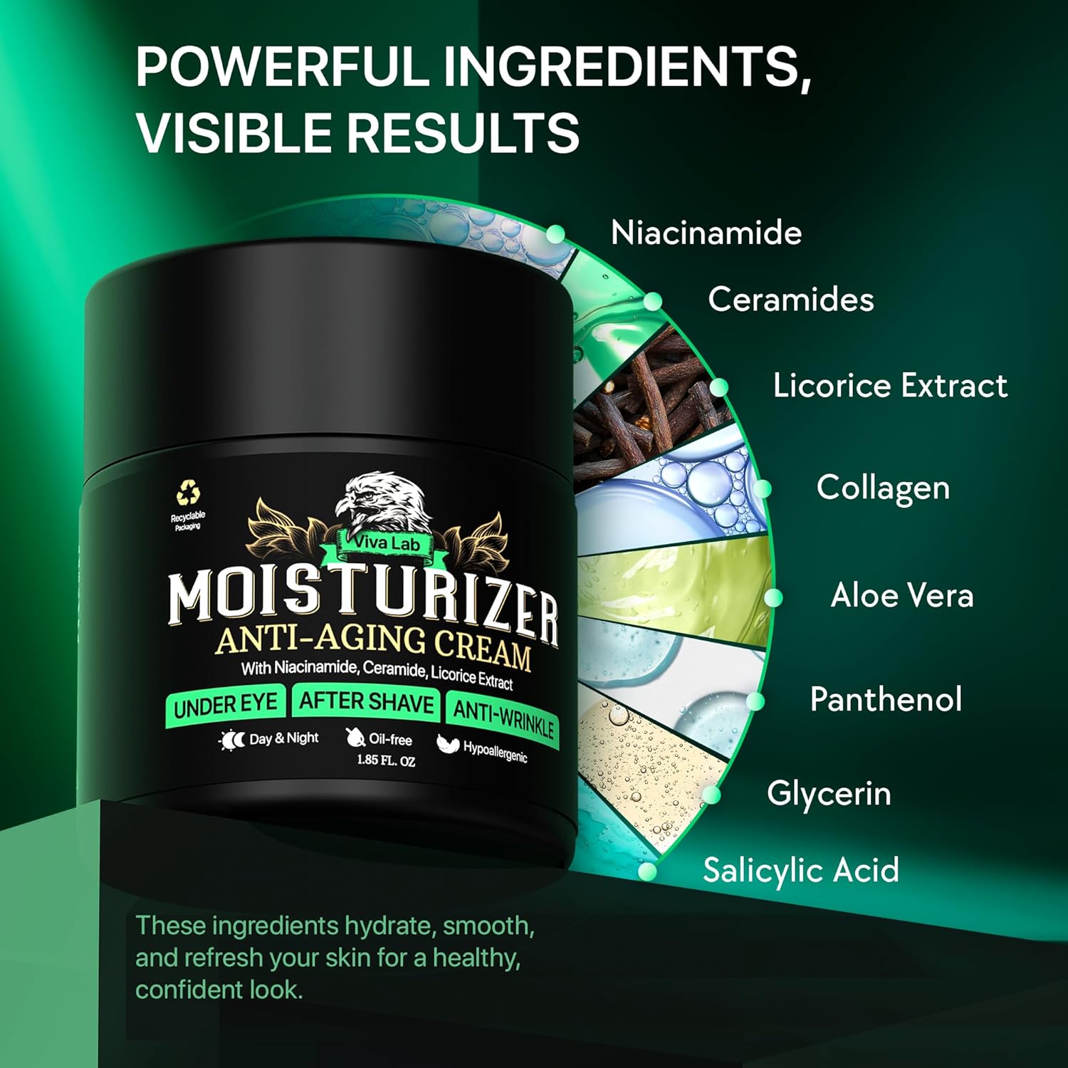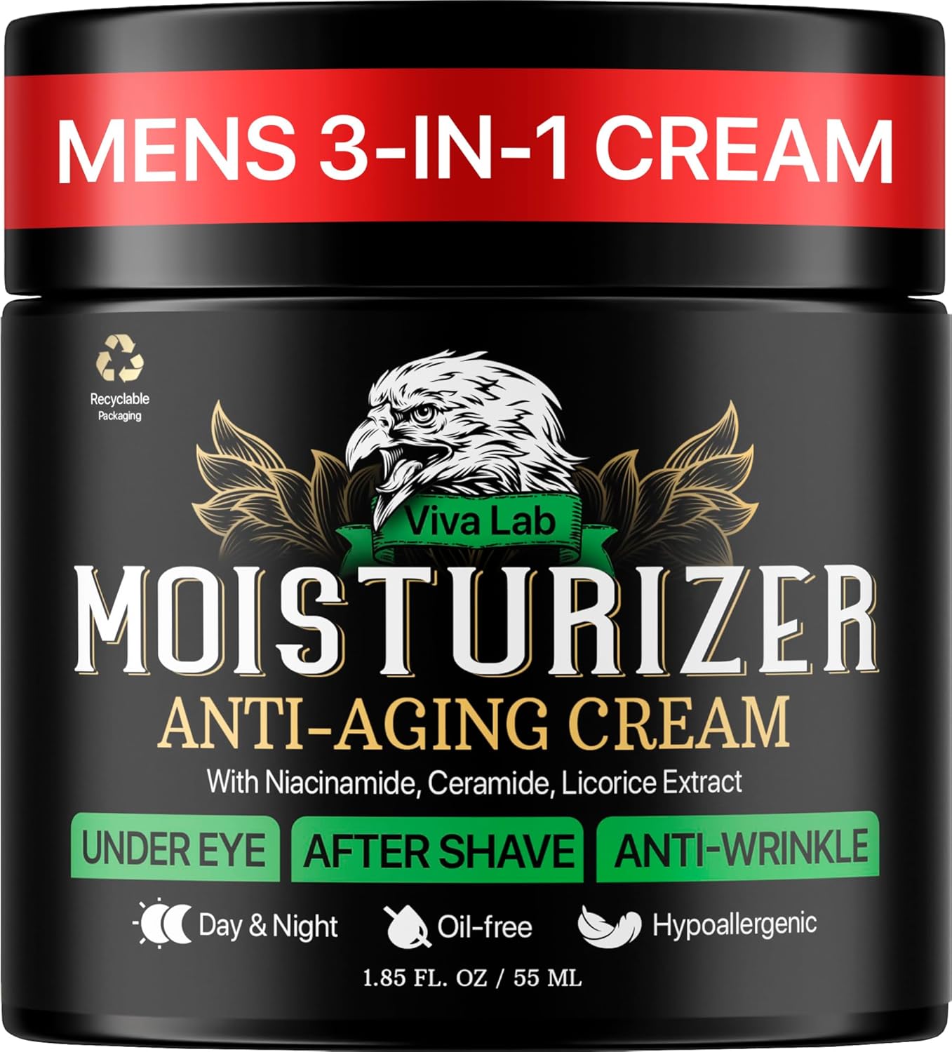 Mens Face Moisturizer Anti-Aging Cream – Lightweight After Shave Lotion for Men – Day & Night Hydrating Skin Care with Niacinamide Collagen Ceramides – Fast-Absorbing Non-Greasy 1.85oz