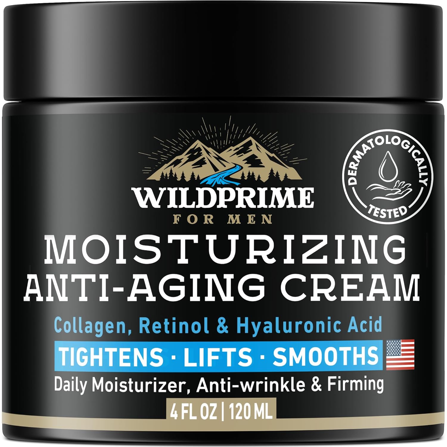 Men’s Face Moisturizer Cream – Anti Aging & Wrinkle – Men’s Shave Lotion – Made in USA – Collagen, Hyaluronic Acid, Vitamins E & A, Avocado Oil – Age Facial Skin Care, Day & Night Moisturizing, 4 oz