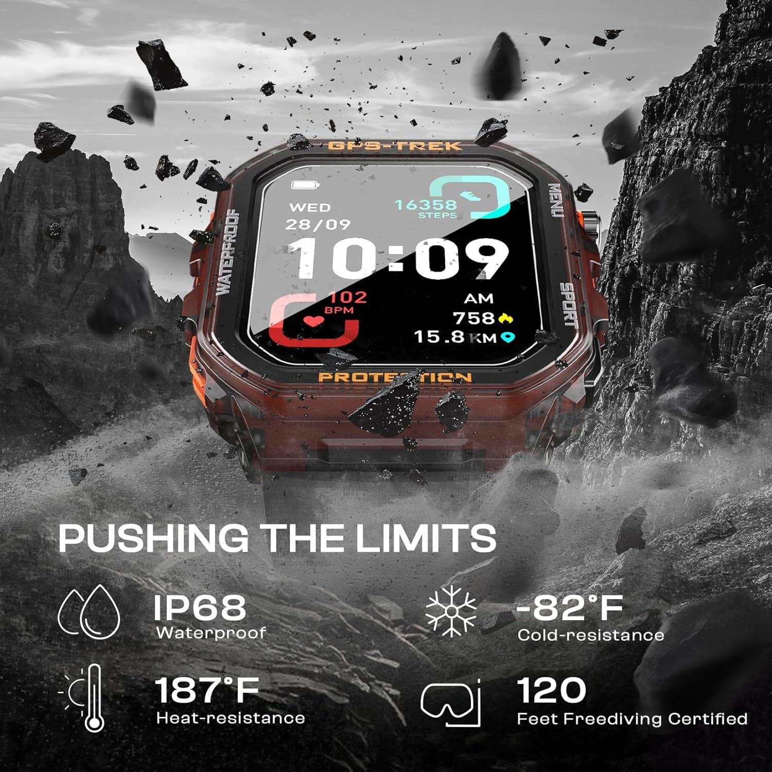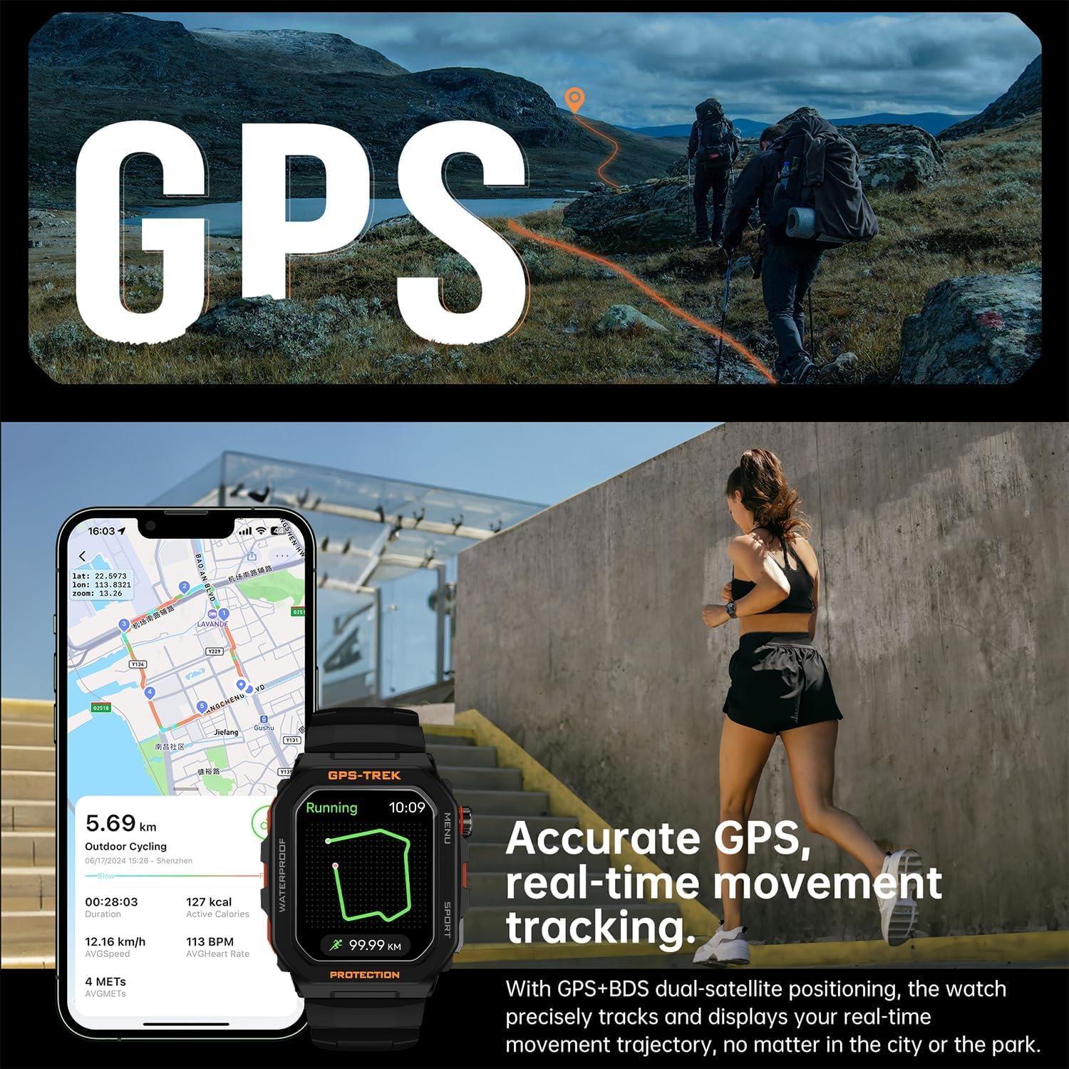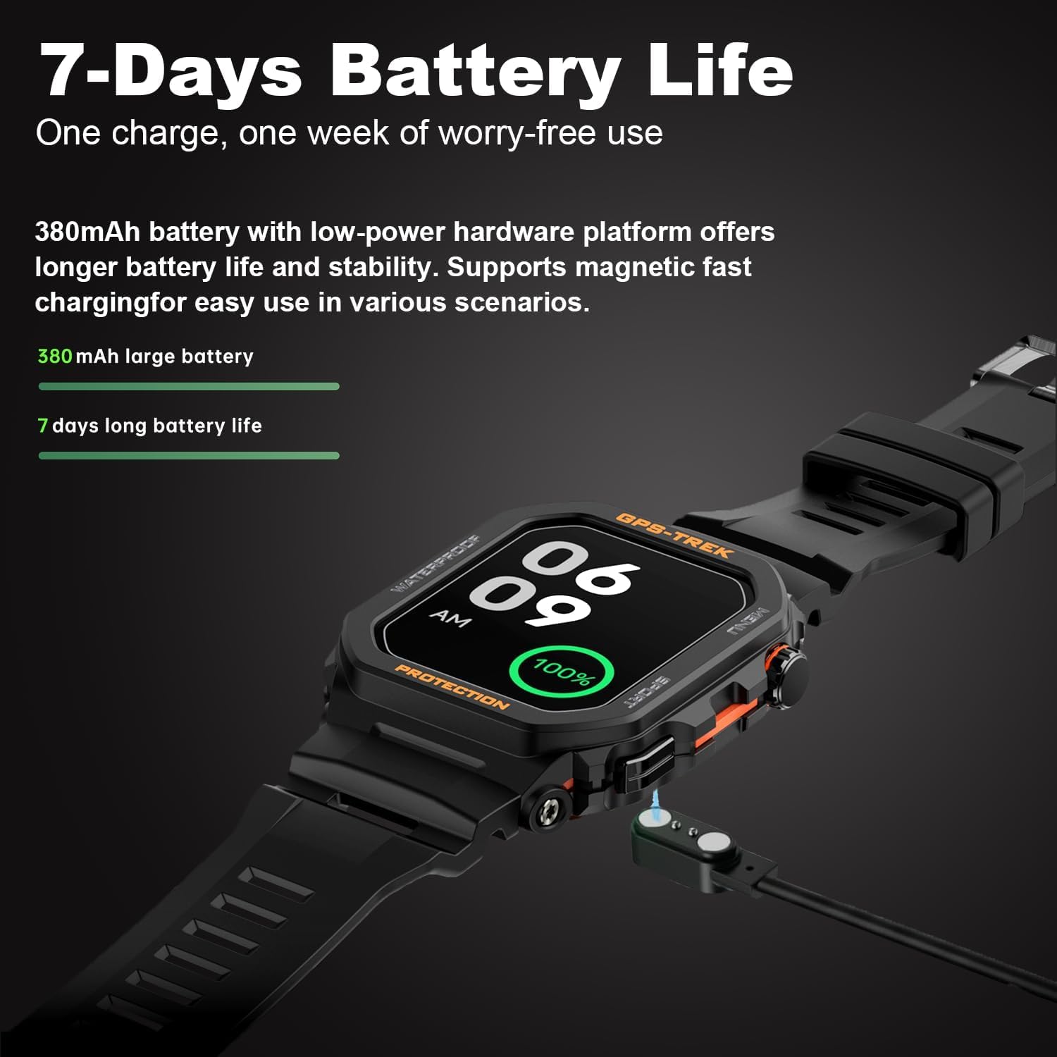 【Military Grade Durability】This robust Military smart watches for men has passed 12 stringent military-grade tests, ensuring it’s ready for any adventure. With heat and cold resistance, it can withstand drops, shocks, scratches, and impacts. It’s waterproof and dustproof, capable of enduring extreme environments like deserts, glaciers, and jungles. Boasting 5 times the durability of standard smart watches for men, it’s the perfect companion for tackling the toughest outdoor challenges.