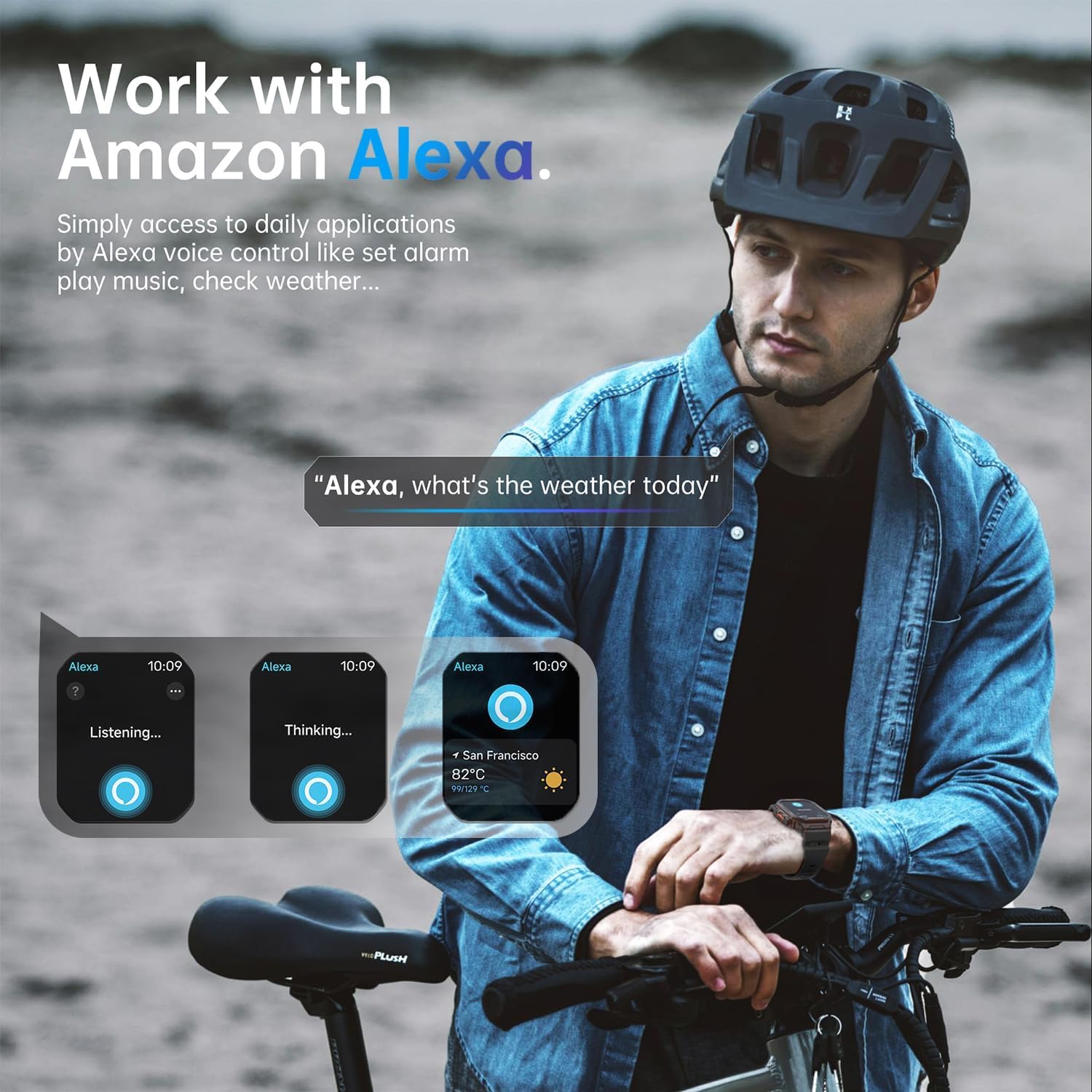 【Bluetooth Calling & Alexa Voice Assistant】 A very useful tool built into the Bluetooth watch. It makes scenarios where it is inconvenient to reach for a mobile phone (e.g. driving) more convenient and intelligent in daily sports and life. This watches for men utilizes the latest Bluetooth 5.3 technology, offering faster and more stable connections. equipped with a built-in microphone and high-definition speaker, you can also converse with the AI voice assistant(Alexa), for quick assistance with tasks such as checking the weather forecast, making phone calls, setting alarms, and more.