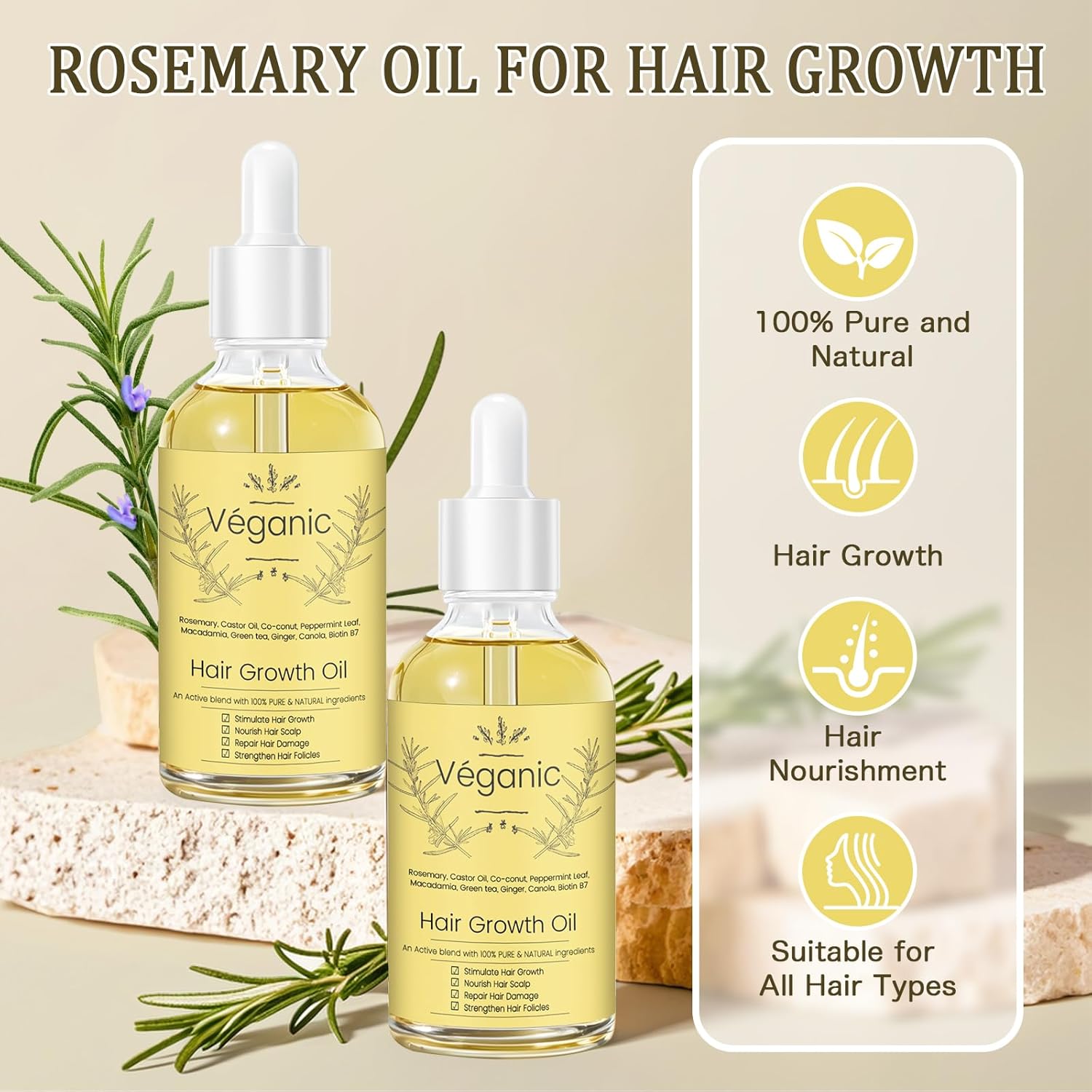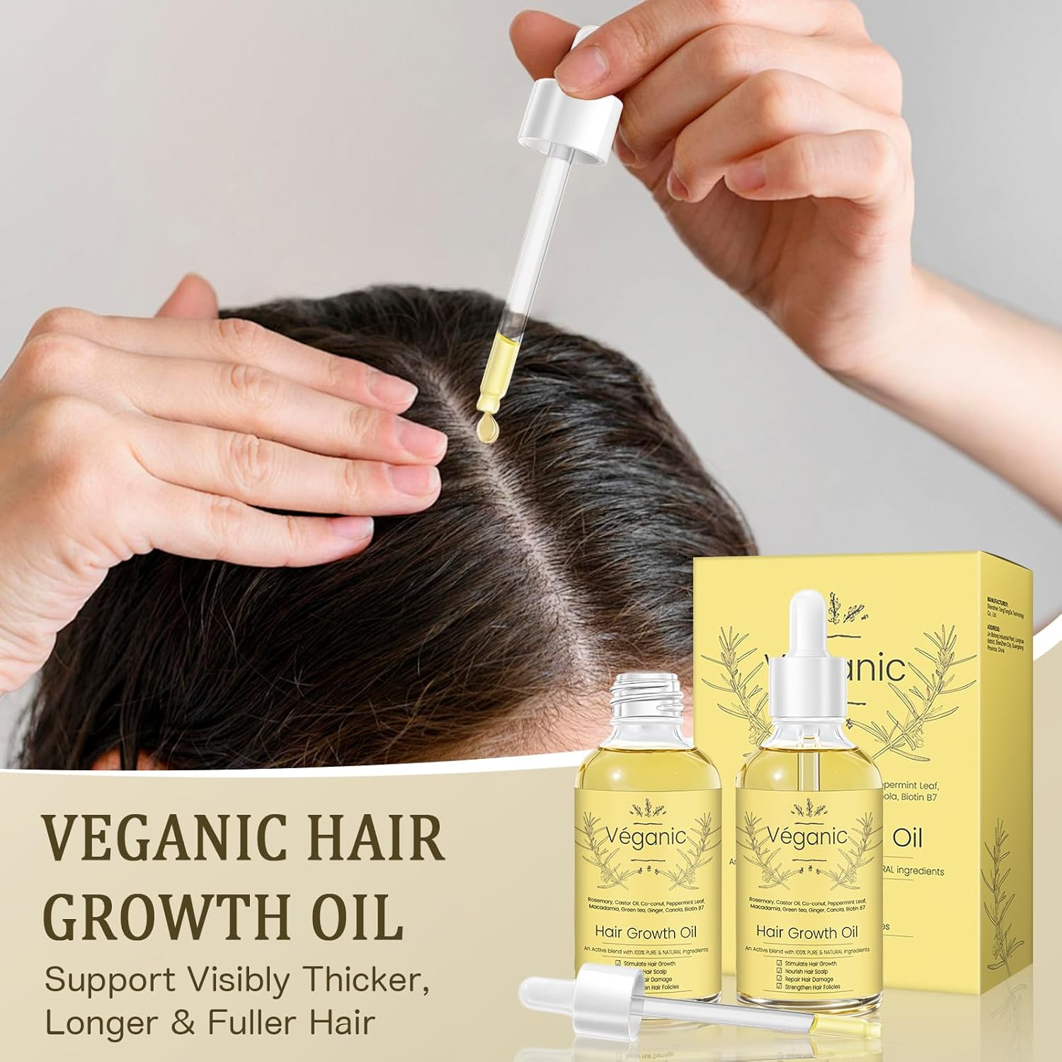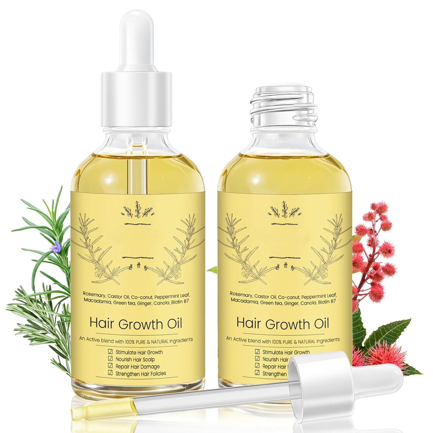 Natural Hair Growth Oil Kit with Rosemary Hair Oils for Hair Growth for Dry Damaged Hair, for Men and Women 2PCS*2 fl.oz (Yellow)