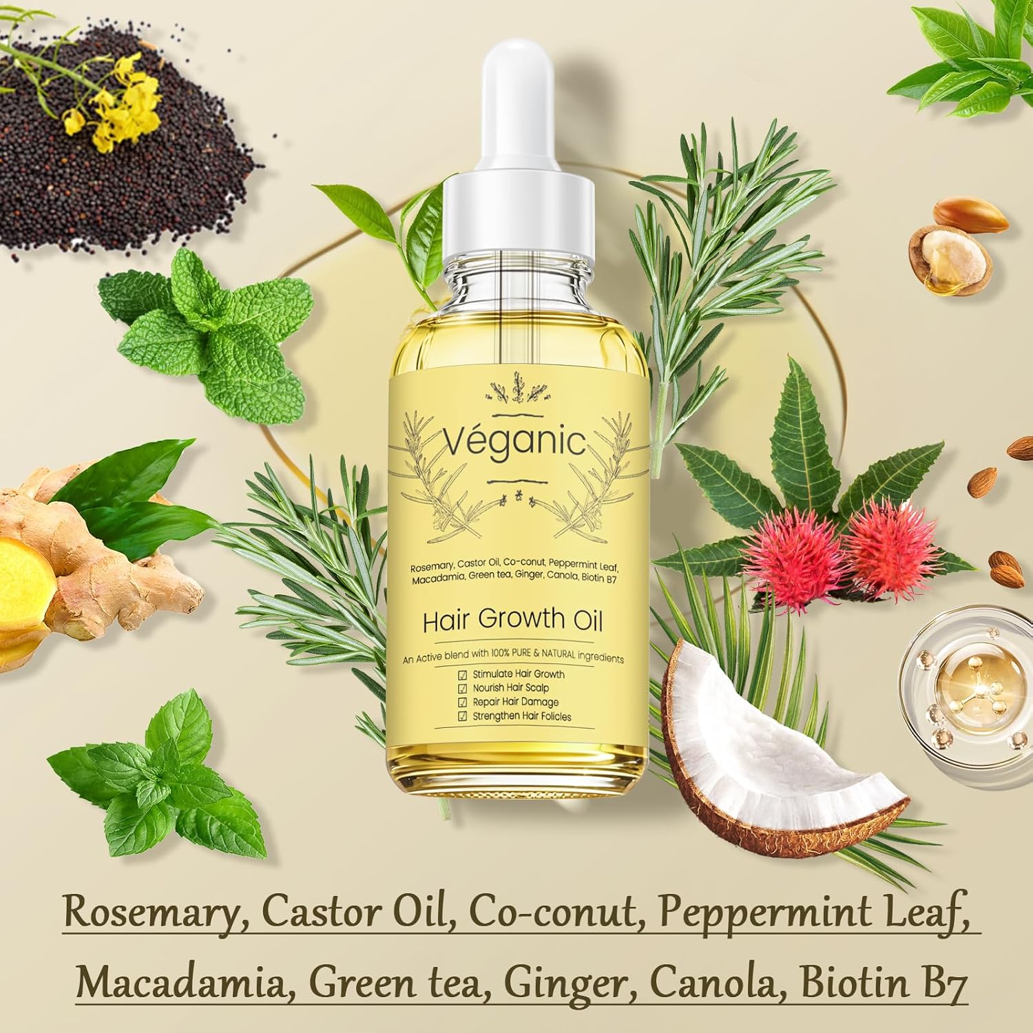 【Effective Ingredients】An Active blend with PURE & NATURAL ingredients with green tea, caster, macadamia, coconut and rosemary oil, that encourages thicker, fuller hair.