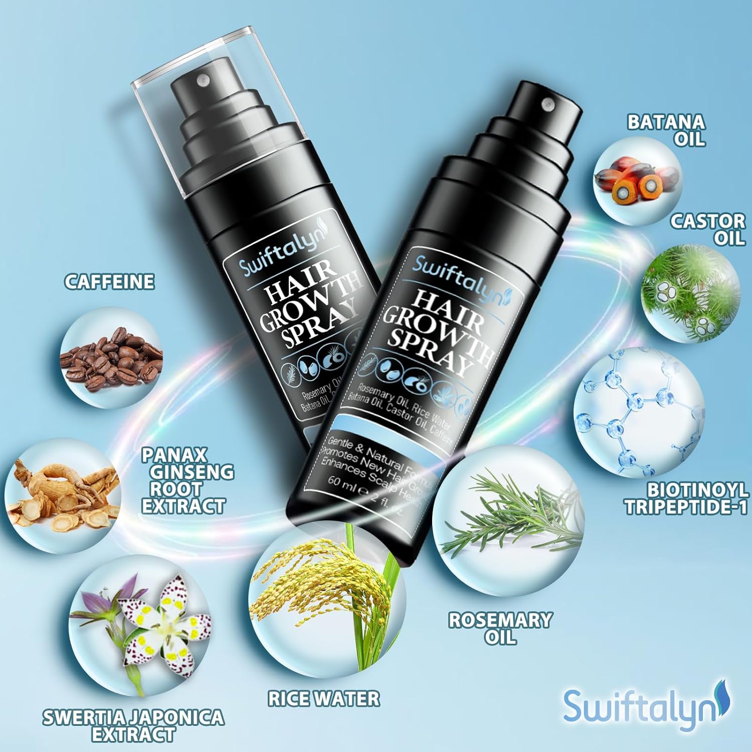Natural Hair Growth Spray Serum for Men: Hair and Scalp Oil with Rosemary, Batana Oil, Rice Water, Castor Oil, Caffeine, Biotin – Effective Hair Thickening and Hair Loss Treatment for Men 60ml