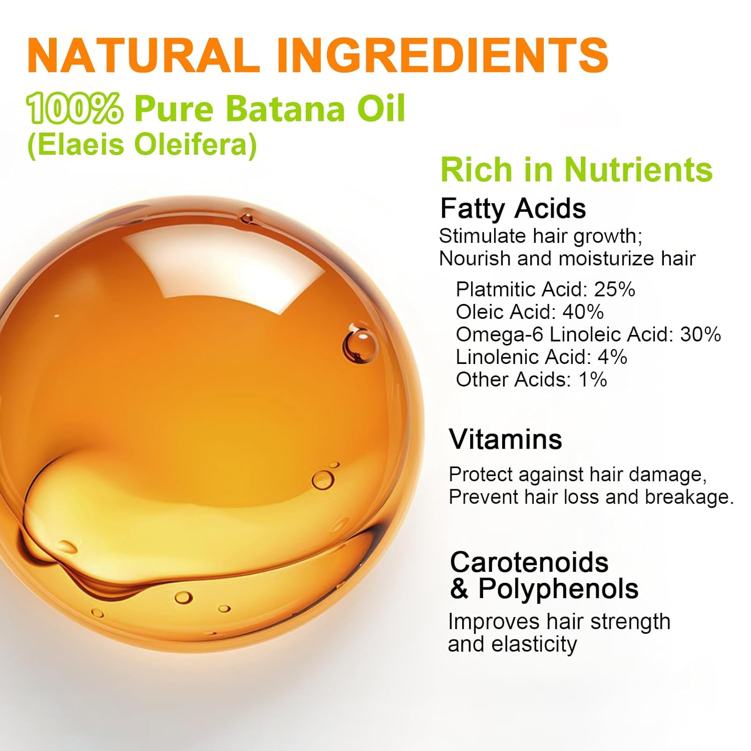 Natural Ingredients: Organic botana oil is rich in various natural elements, such as Vitamin E, Omega-6 linoleic acid, phytosterols, carotenoids, to support moisturized and healthy hair