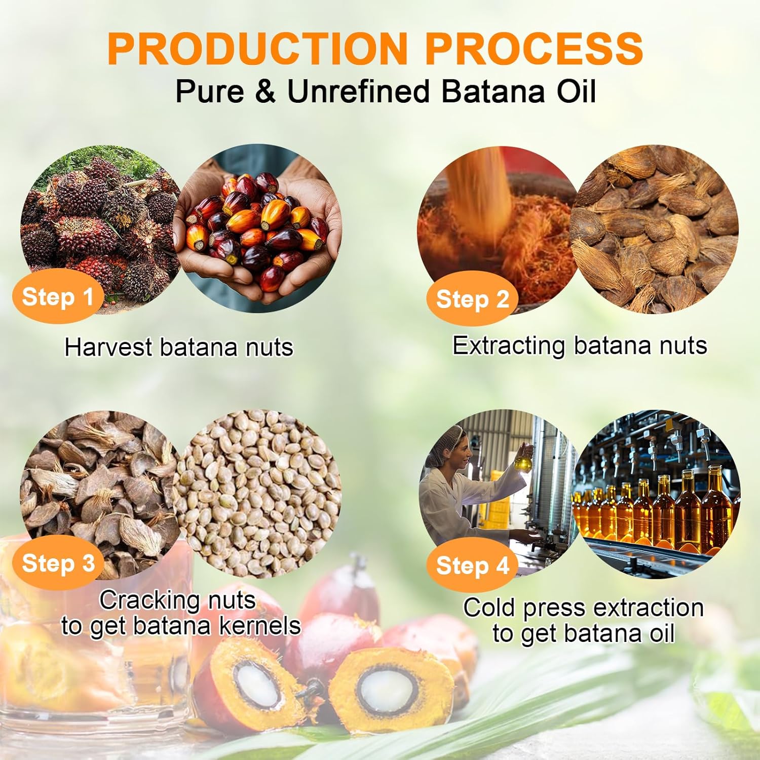 100% Raw & Pure: Unrefined batana oil for hair growth is extracted from nuts of American Palm Tree, sourced from Honduras, also known as Elaeis Oleifera Kernel Oil