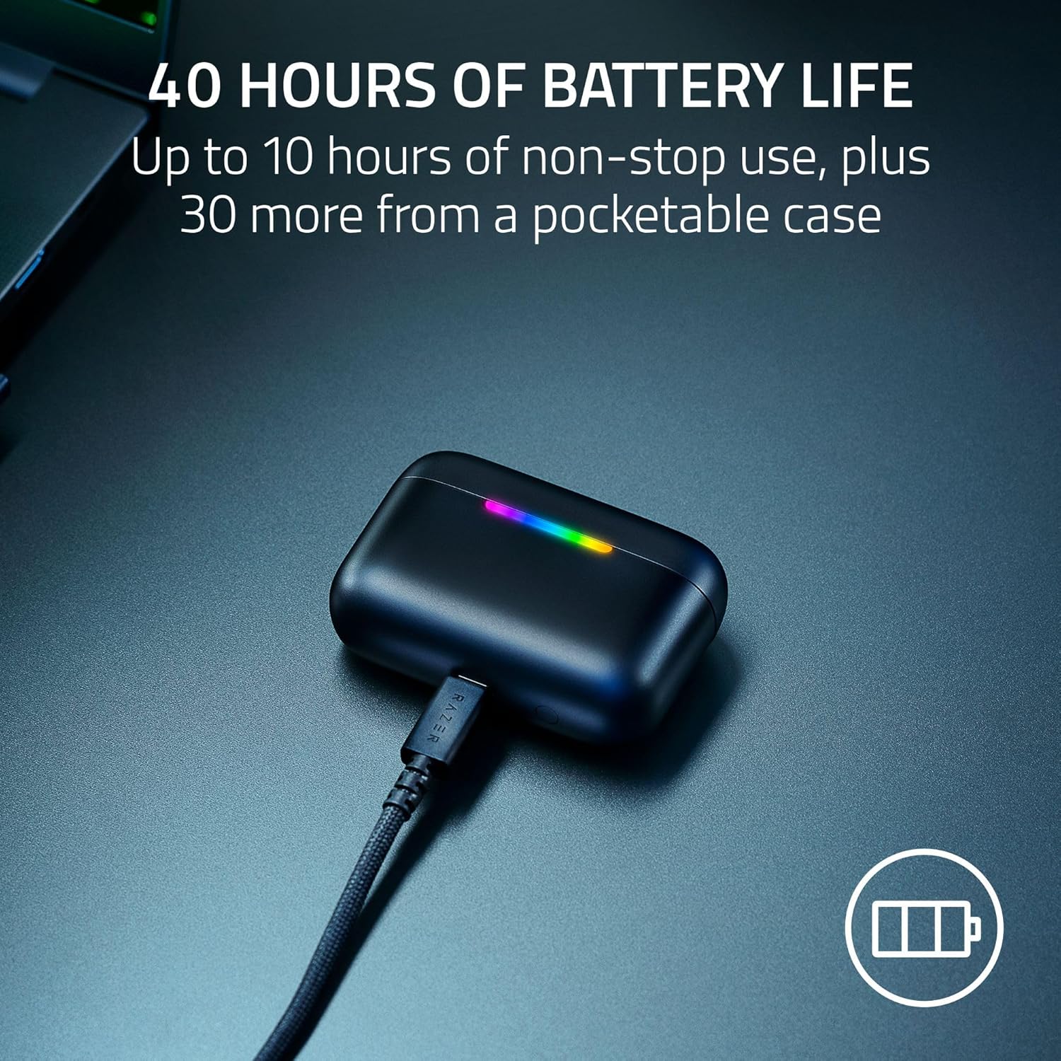 UP TO 40 HOURS BATTERY LIFE — Play and listen longer with up to 10 hours on the earbuds plus 30 additional hours from the pocketable charging case, with USB‑C passthrough to keep gaming while charging