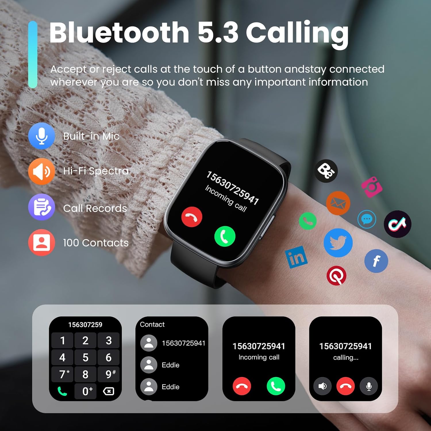 All-Day Health & Fitness Companion: Stay on top of your wellness with 24/7 heart rate monitoring, blood oxygen (SpO2) tracking, and advanced sleep analysis. This smart watch records 100+ sports modes like running, cycling, and yoga. The Fitness tracker is IP68 waterproof, allowing you to wear it during outdoor activities, rainy days, and while washing hands (Note: Do Not use in showers, saunas, swimming etc)