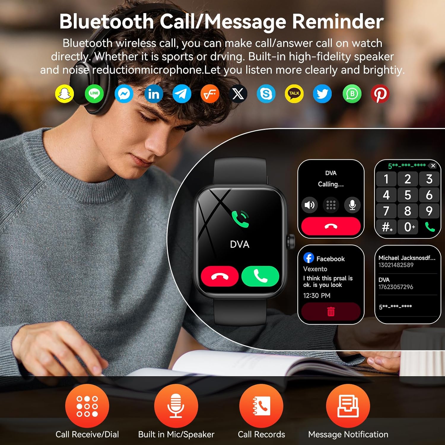 Bluetooth Calling & Smart Notifications: Stay connected effortlessly with seamless Bluetooth 5.3 hands-free calls, powered by a high-definition speaker and microphone for crystal-clear audio. Your smart watch keeps you in the loop by displaying real-time notifications from WhatsApp, Telegram, and Facebook directly on the vibrant 1.83″ HD touchscreen, keeping you informed without constantly checking your phone(Note: Message replies not supported)