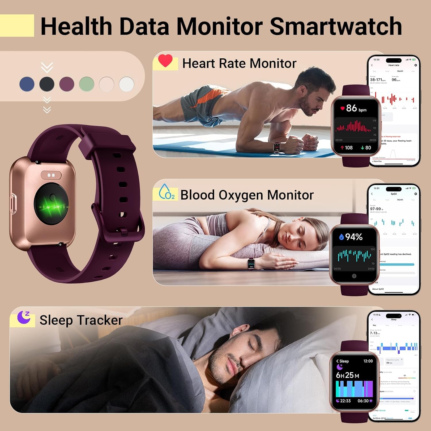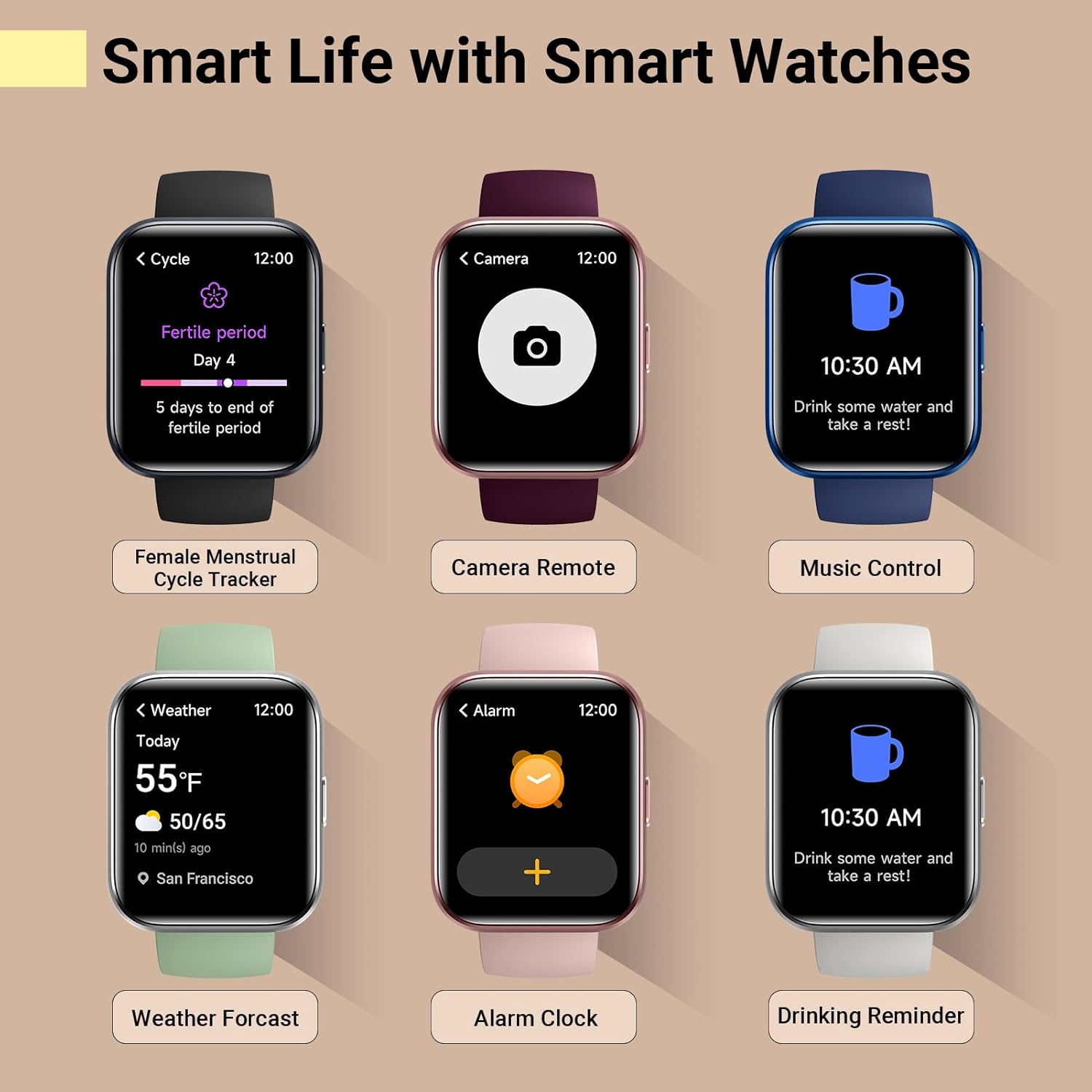 Advanced Health Monitor and Sleep Tracker: During rest and work, health watches can provide us with body health data, including heart rate, stress and blood oxygen monitoring, sleep tracking, and female menstrual cycles. It is convenient for us to understand our physical status better and make timely judgments and adjustments.