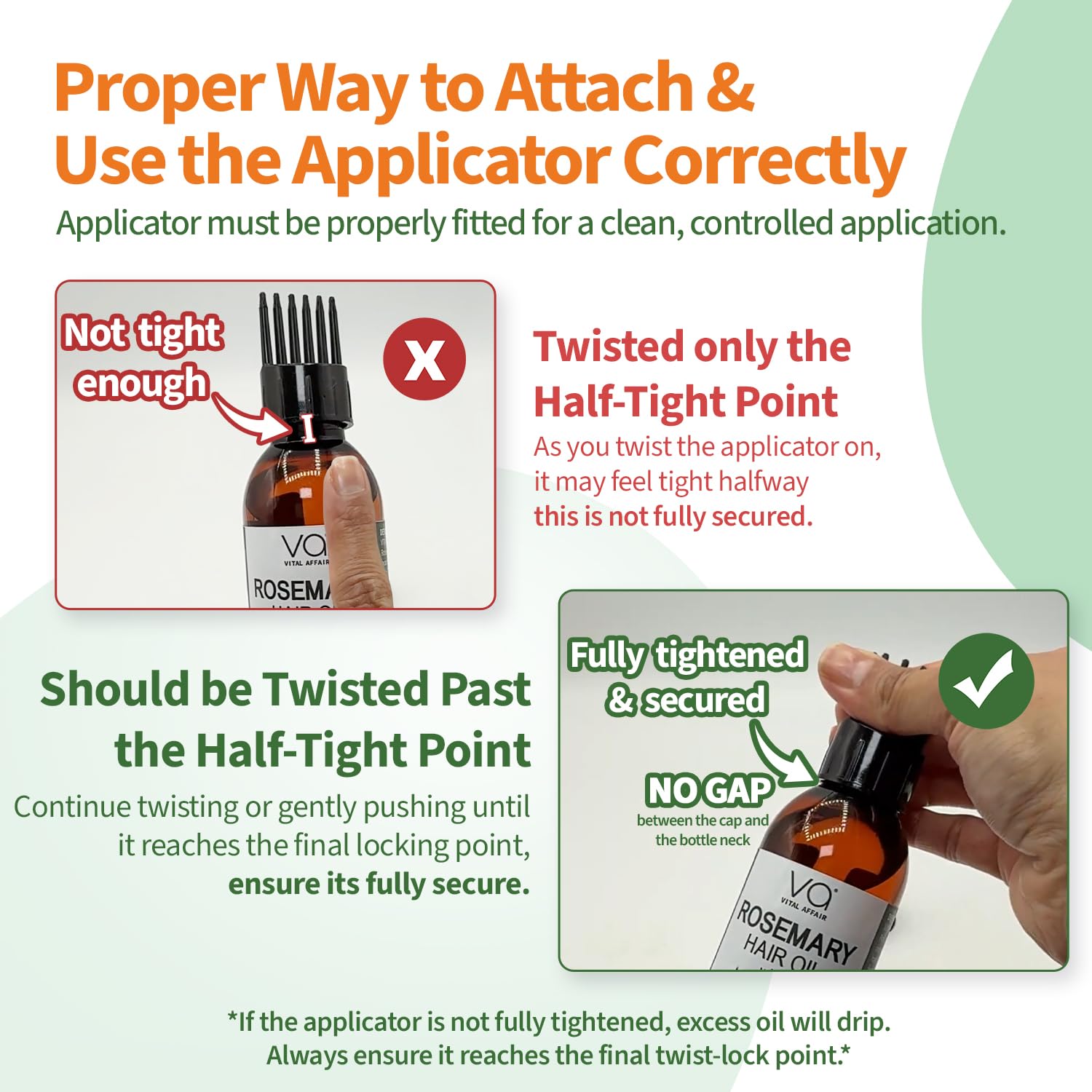 I give this a three, although I think the actual oil itself is great. The bottle along with the attachments are terrible. My attachments do not connect properly with the bottle and the oil leaks everywhere. I had the most problems with the comb like attachment because it really did not fit on the bottle which defeats the purpose of having that essential attachment. I specifically bought this brand so that I wouldn’t have to buy the attachment since this one came with it. Very disappointed