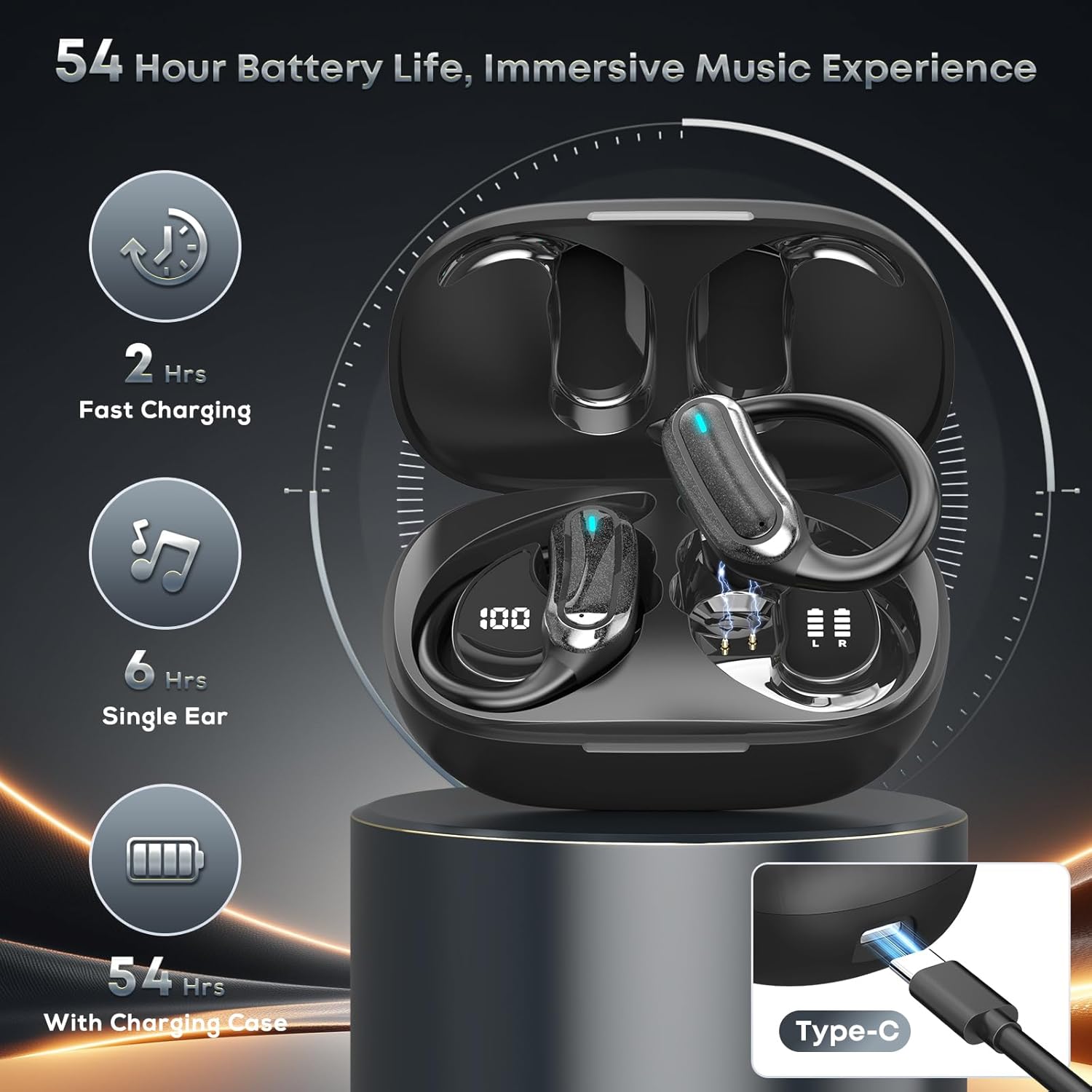 【10-Minute Quick Charge & Long Playback】Enjoy up to 6 hours of playtime on a single charge, extended to 54 hours with the 400mAh charging case. The Type-C quick-charge fully charges the case in 1.5 hours, and a 10-minute quick charge provides 2 hours of playback. Easily monitor power status with the LED percentage display, ensuring all-day use without battery worries. Perfect for travel, workouts, and daily commutes. Stay connected and entertained wherever you go