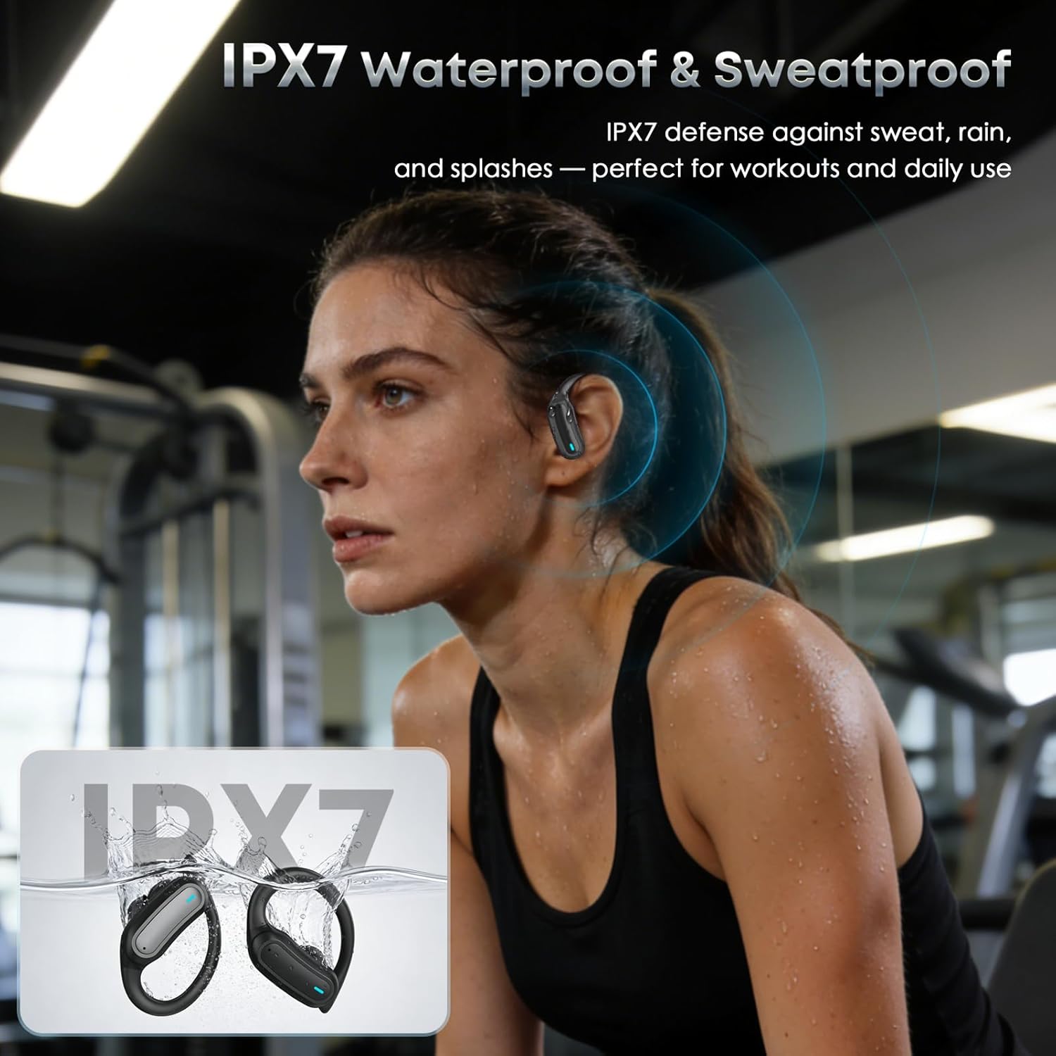 【IPX7 Waterproof & Comfortable Fit】Our i27 sports headphones feature a soft, ultra-light earhook design for a secure and comfortable fit, weighing just 7g each and including three sizes of silicone earplugs (S/M/L) for personalized comfort. With IPX7 waterproof certification, they resist sweat, rain, and splashes, making them perfect for workouts, running, and outdoor activities. Built for active lifestyles, they’re your ideal adventure companion (Note: Not suitable for submersion in water)