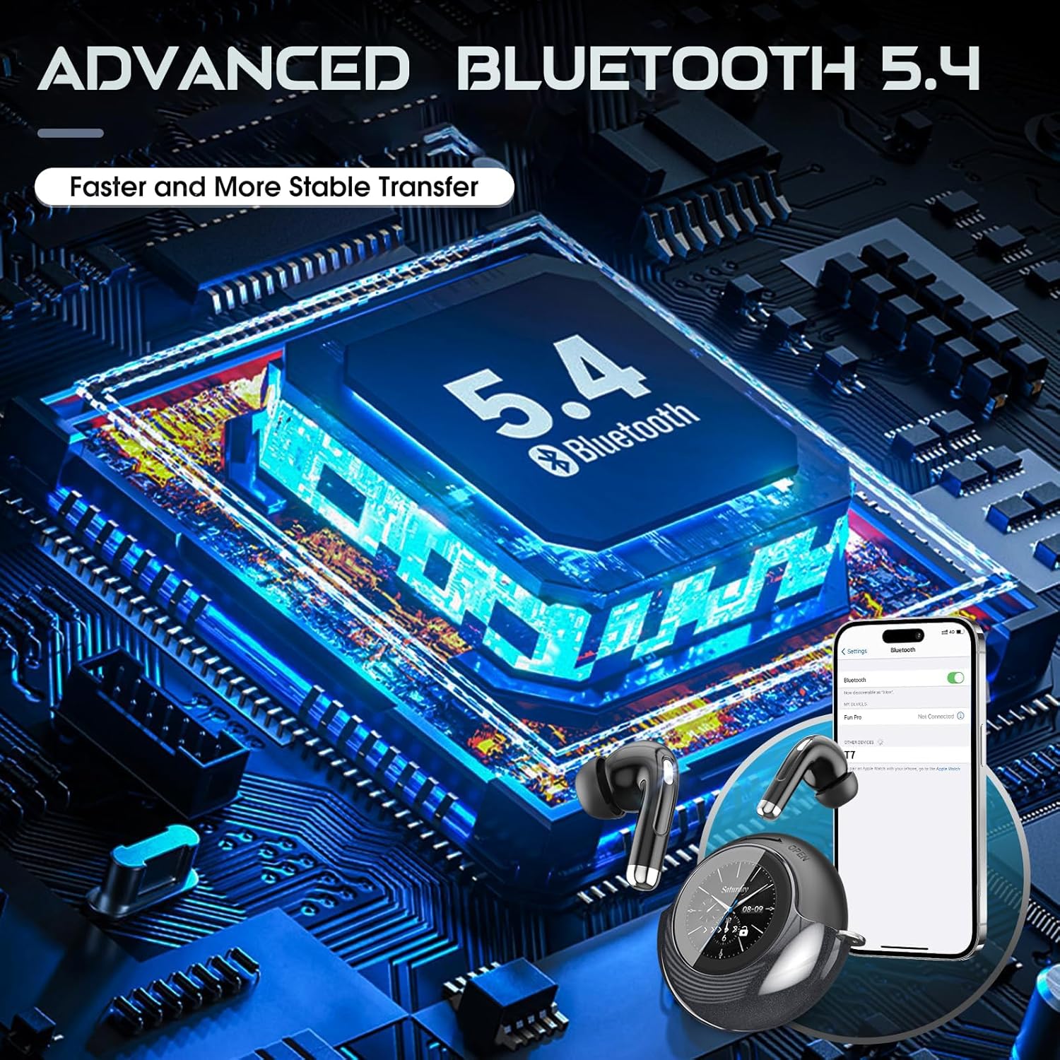 【FULL-COLOR SMART LCD TOUCH SCREEN】 Take total command of your audio without unlocking your phone. The T7’s interactive LCD touch interface allows you to adjust volume, switch music tracks, and choose from multiple EQ Presets (Jazz, Bass, Pop, etc.) directly on the case. It also features a “Find My Earbuds” locator, custom wallpapers, timer settings—giving you a completely App-free, streamlined experience.