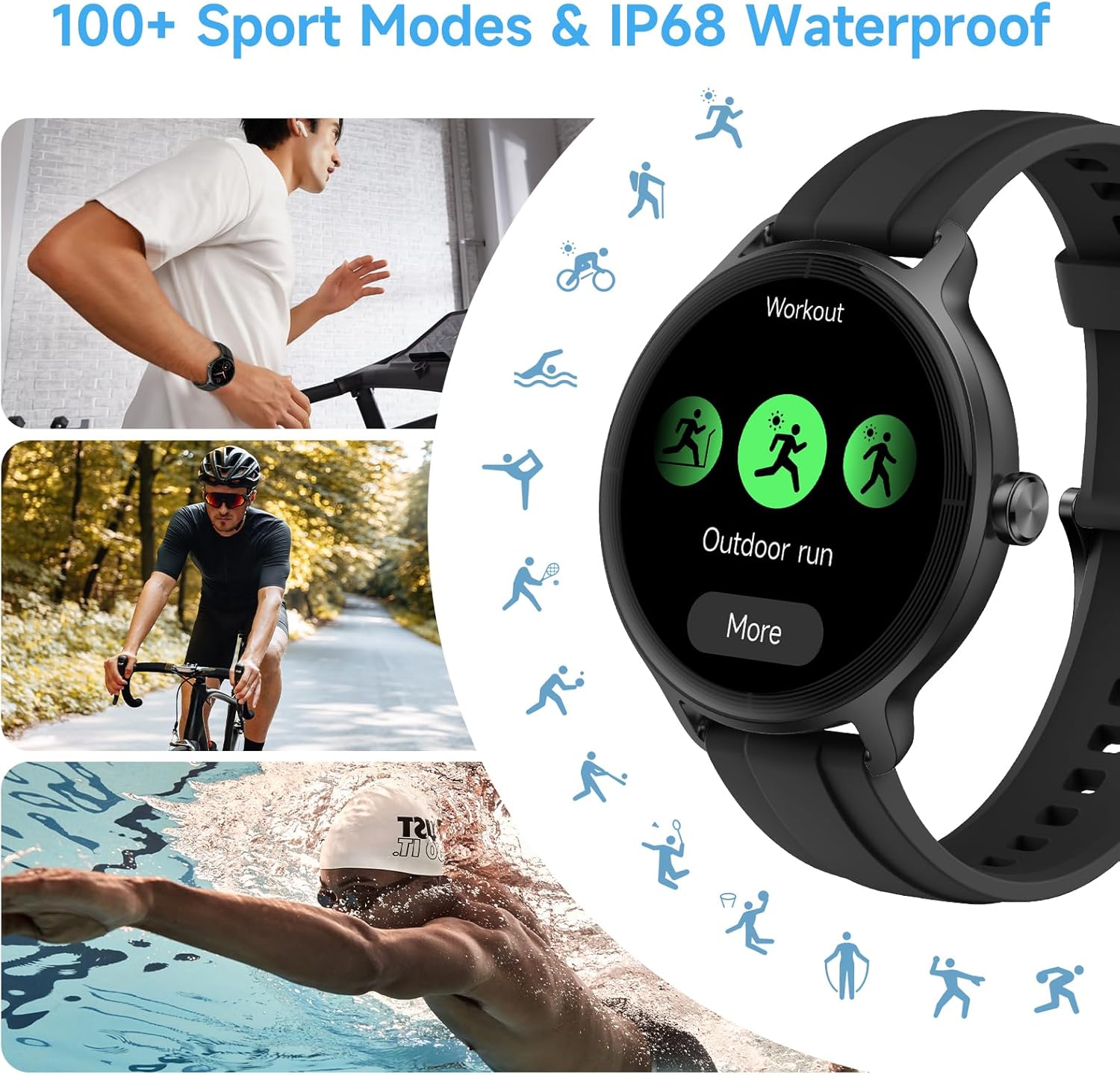 YMZ Smart Watch for Men Women, 1.27″ HD Touchscreen Fitness Tracker, Bluetooth Calling, 100+ Sports Modes, Sleep Monitor, IP68 Waterproof, Compatible with Android & iOS