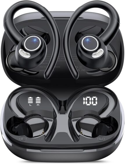 Wireless Earbuds, Bluetooth 5.4 Headphones Sport, Over Ear Buds With ENC Noise Cancelling Mic, 48H, Wireless Earphone With Earhooks, Stereo Deep Bass, IP7 Waterproof ear bud for Workout Running, Black