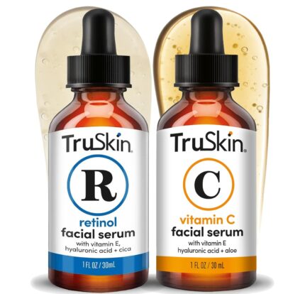 TruSkin Face Serum Duo – Vitamin C Serum & Retinol Serum for Face – AM & PM Anti Aging Skincare Routine – Brightening & Smoothing Facial Serums, 1 fl oz Each